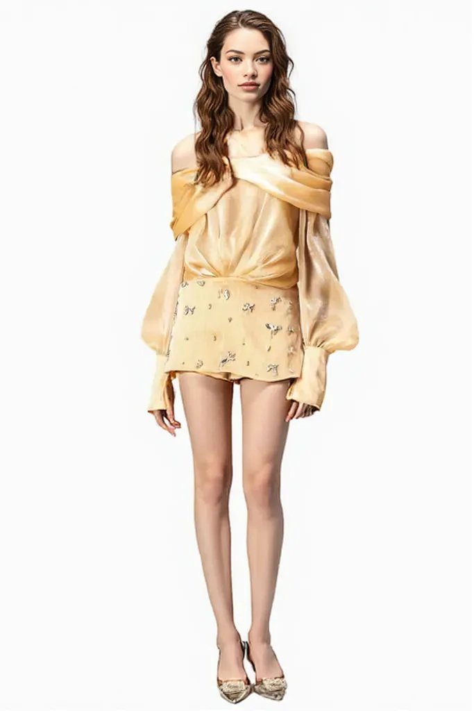 Cream Chiffon Off-Shoulder Mini Dress
