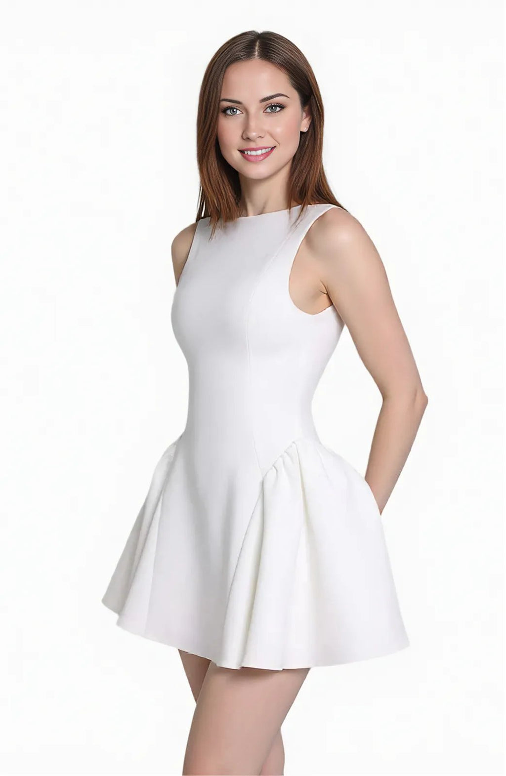 White Long Sleeveless Mini Dress with Crystal