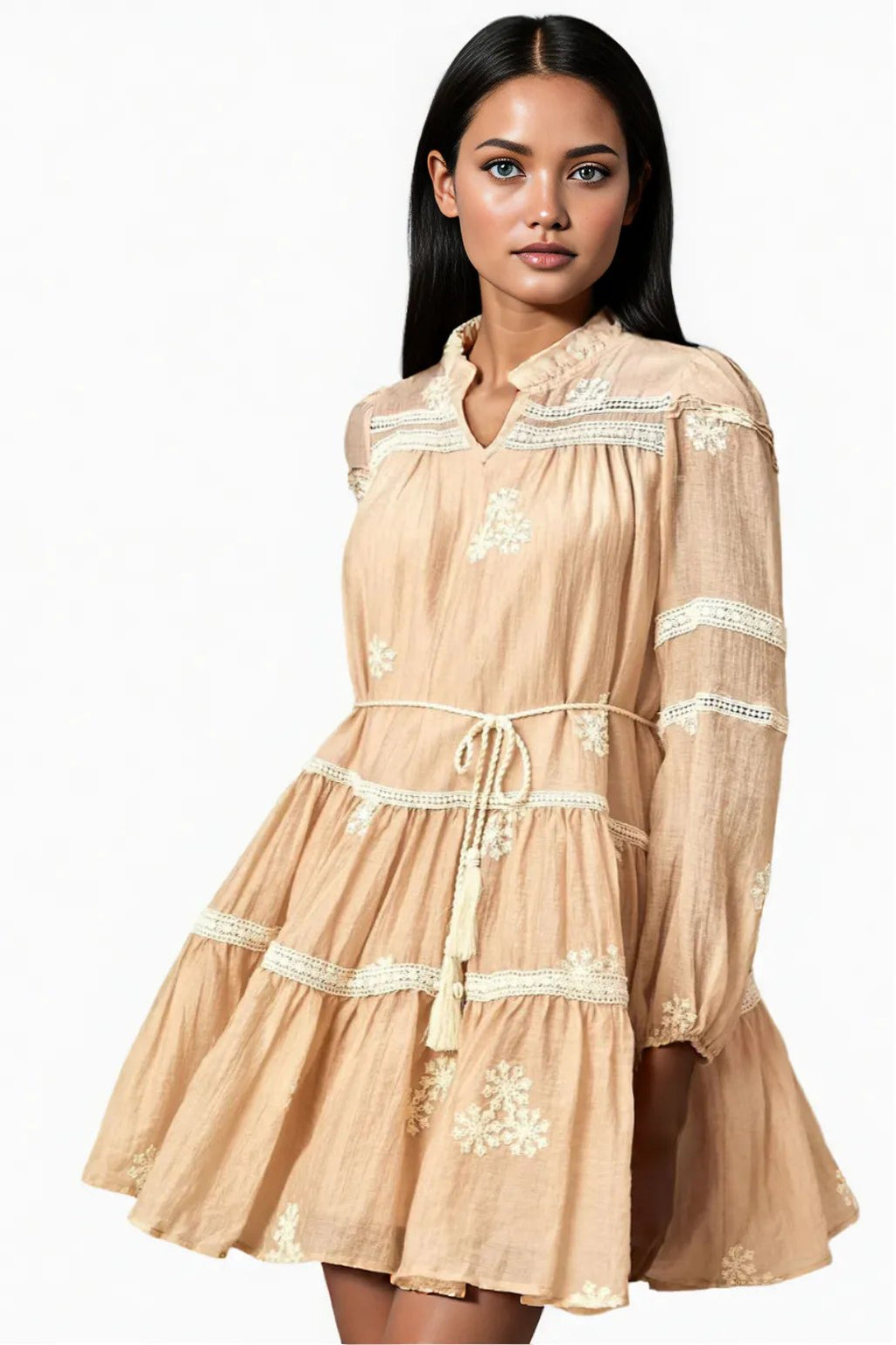 Nude Mini Dress with Embroidered