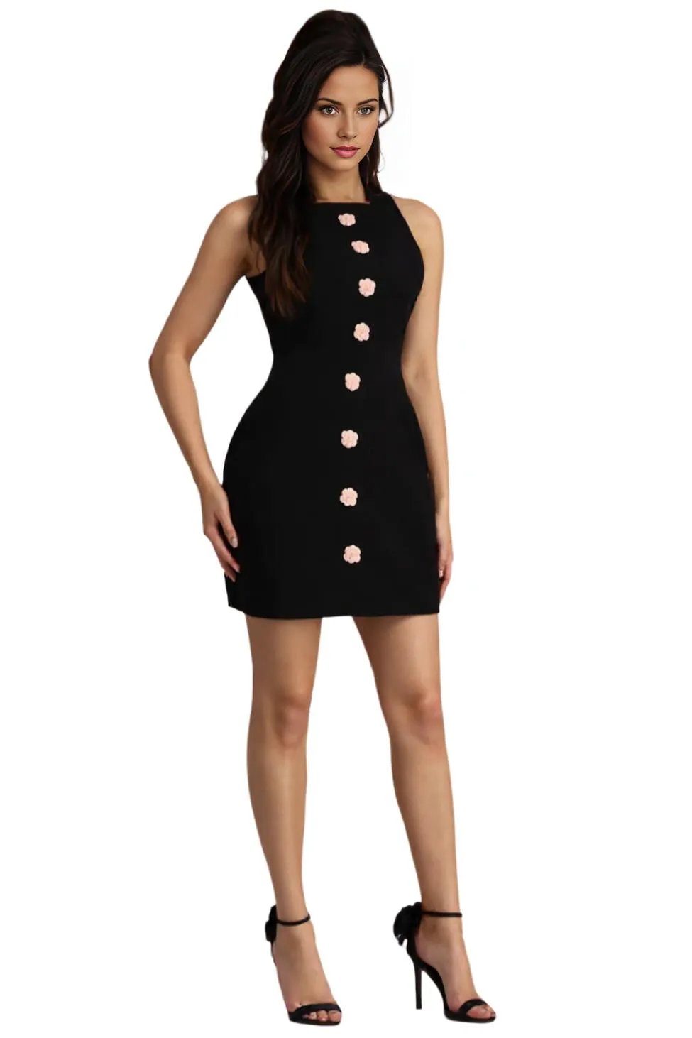 Black Mini Dress with 3D Flowers