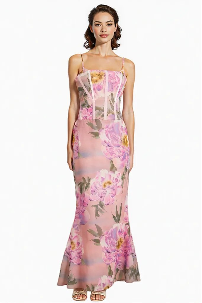 Pink Floral Corset Maxi Dress
